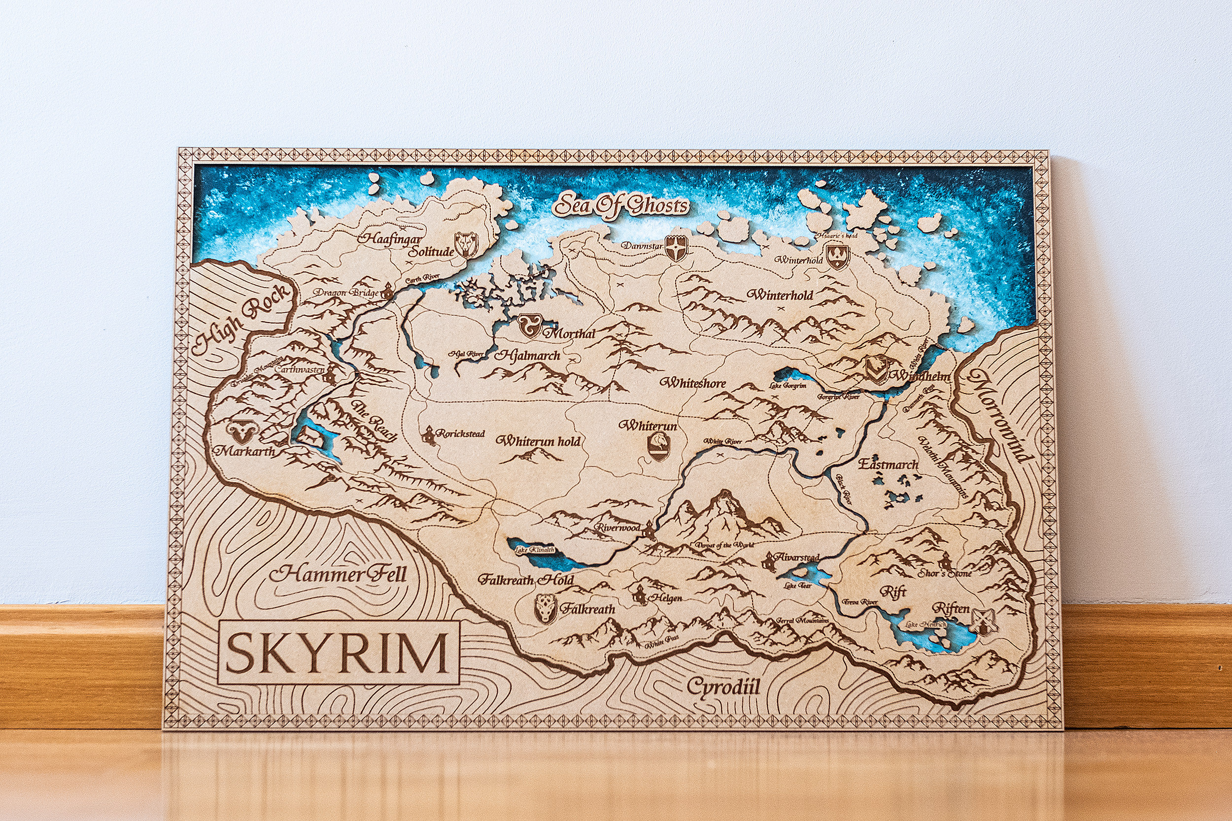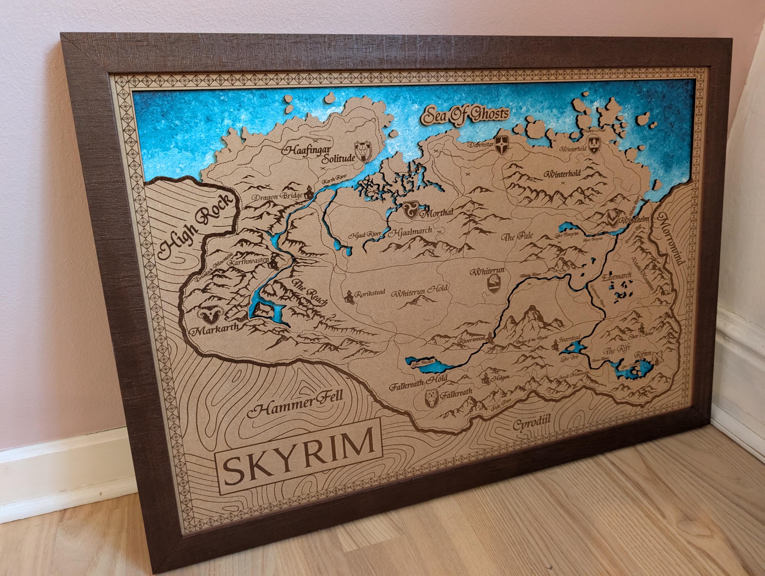 The map is amazing! It looks just like the picture and I can't wait to hang it on our wall. Super detailed and the painted water behind the laser printed map really makes it pop. Absolutely gorgeous
