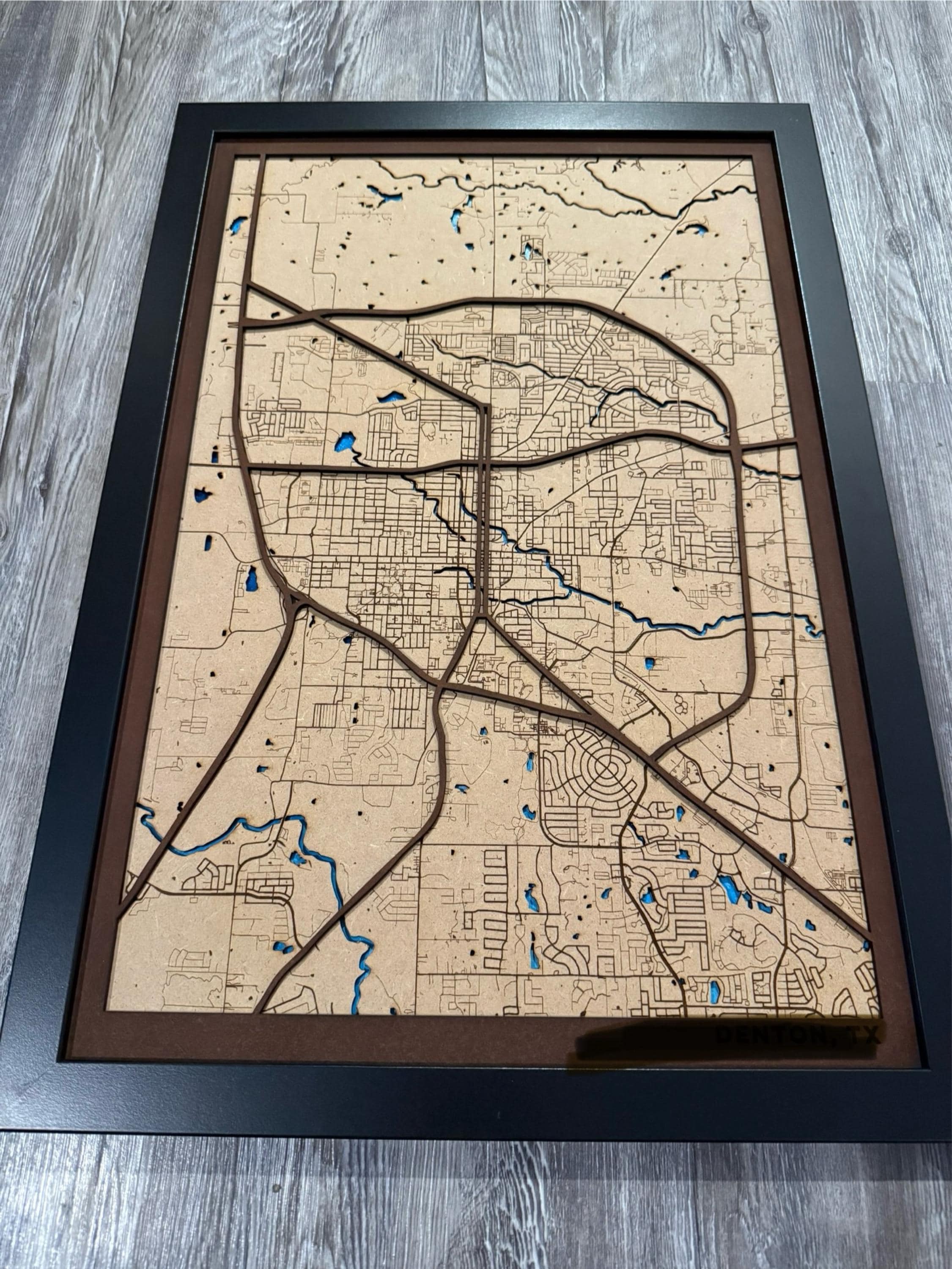 Hand painted, engraved and laser cut wooden map of Philadelphia or any other city or town in the world.