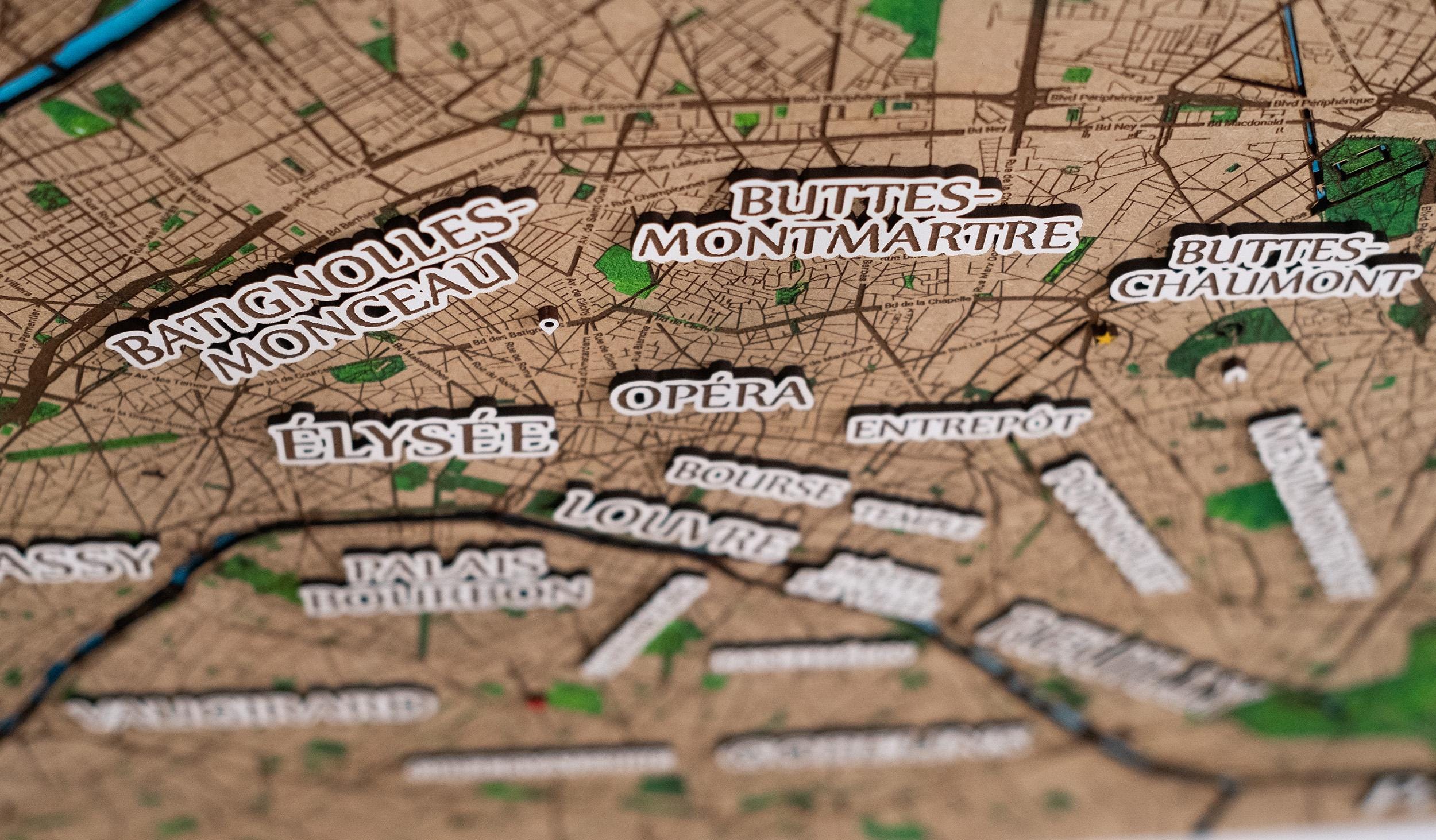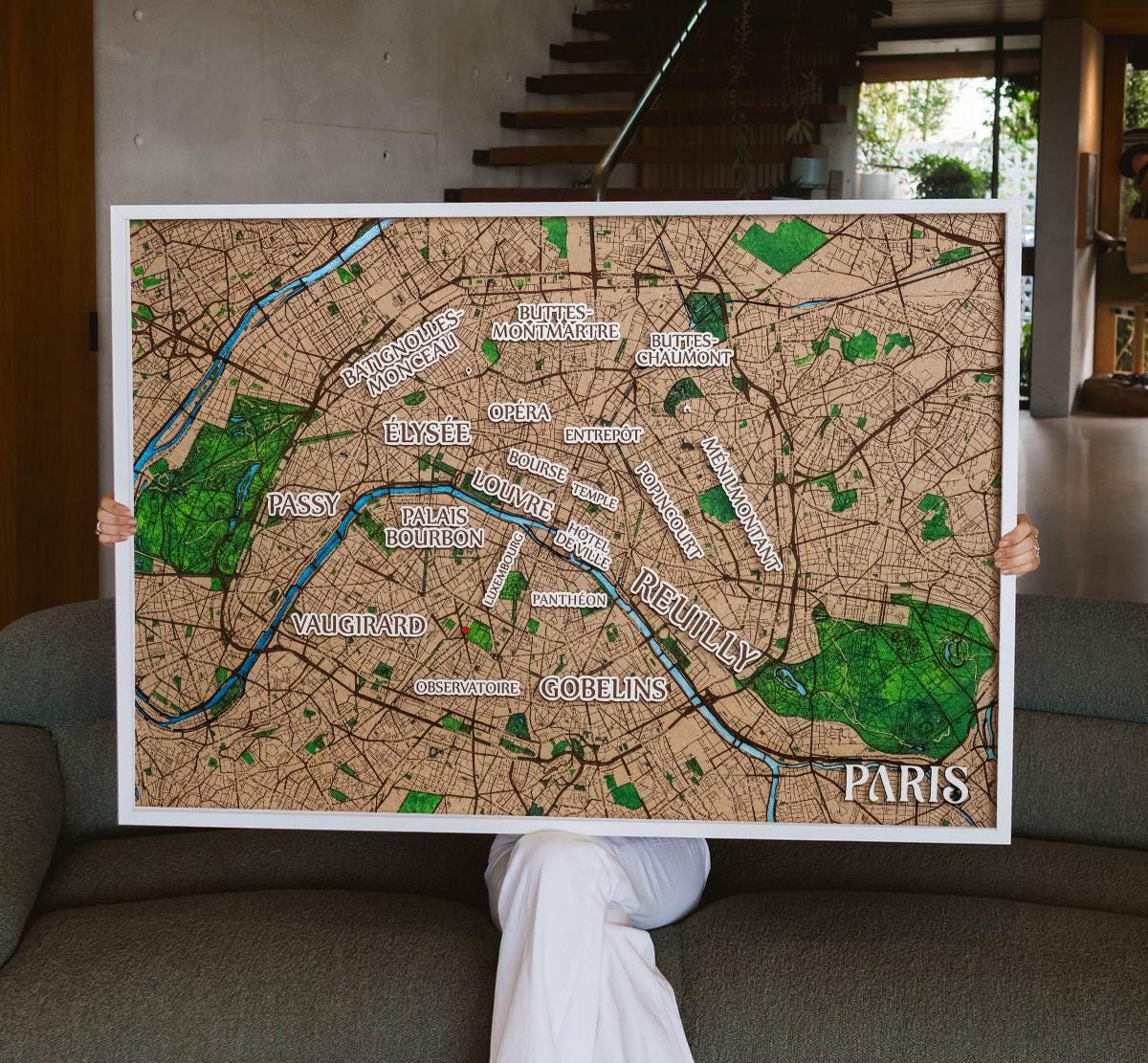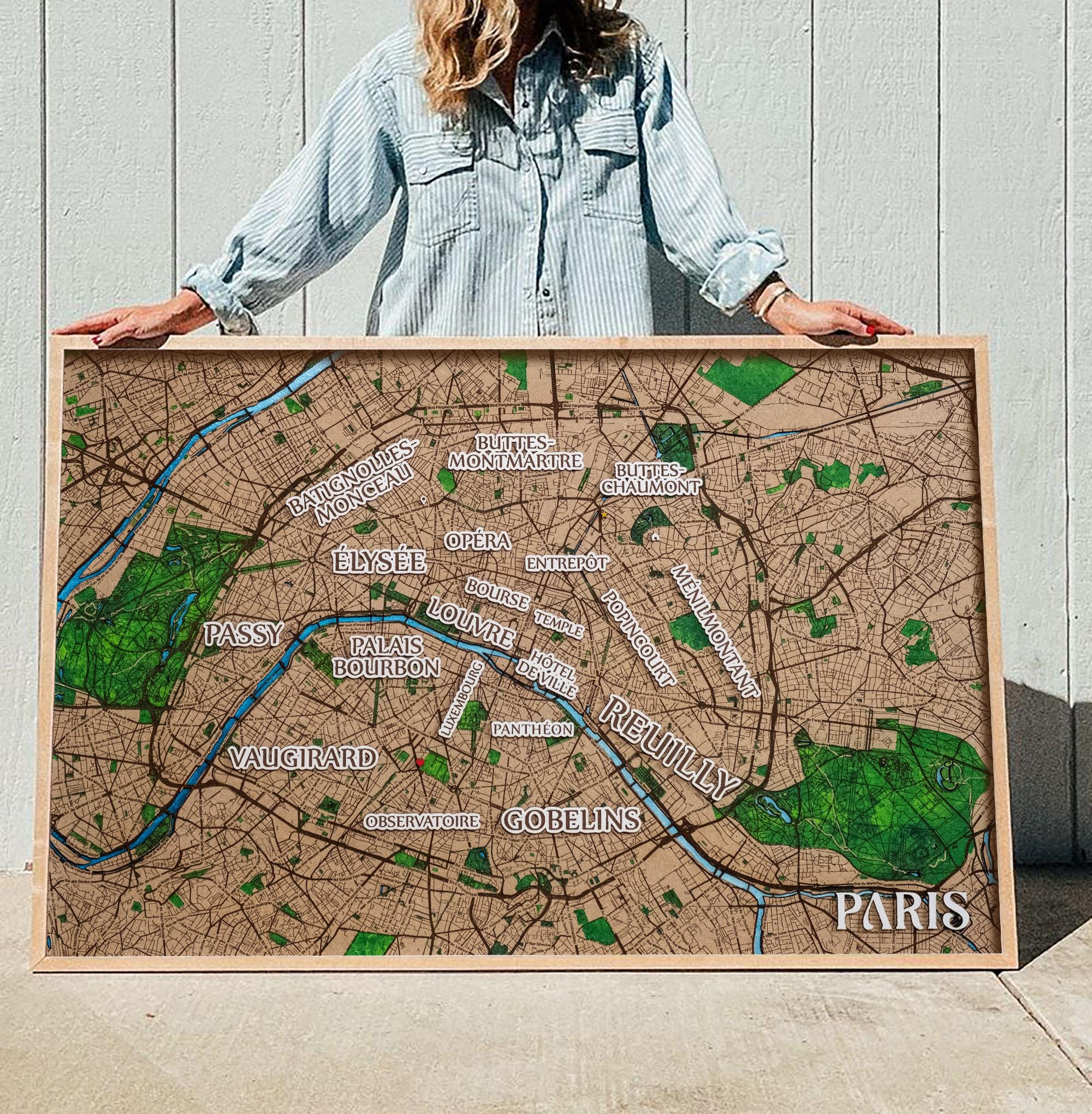 Unique Personalized Gift for Housewarming, Paris Wooden Map, 5th Anniversary Birthday Wedding, Wood hand painted map